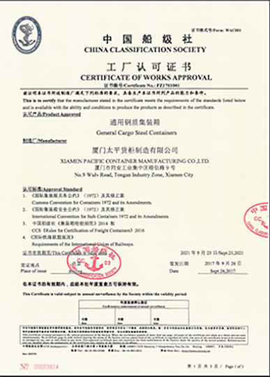 中國(guó)船級(jí)社工廠認(rèn)可證書(shū)